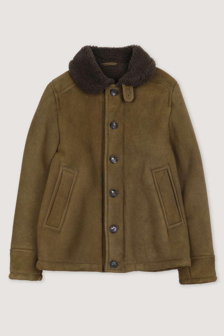 Valstar sheepskin deck jacket in shearling suede - Olive green